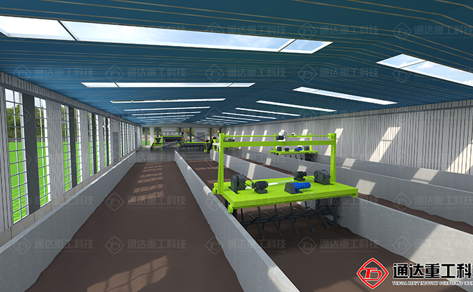 2.1 將回收的畜禽糞便直接進(jìn)入發(fā)酵區(qū)。經(jīng)過(guò)一次發(fā)酵、二次陳化堆放,消除畜禽糞便的臭味。此階段可加入發(fā)酵菌種,將其中的粗纖維進(jìn)行分解,以便粉碎后的粒度要求符合造粒生產(chǎn)的粒度要求。